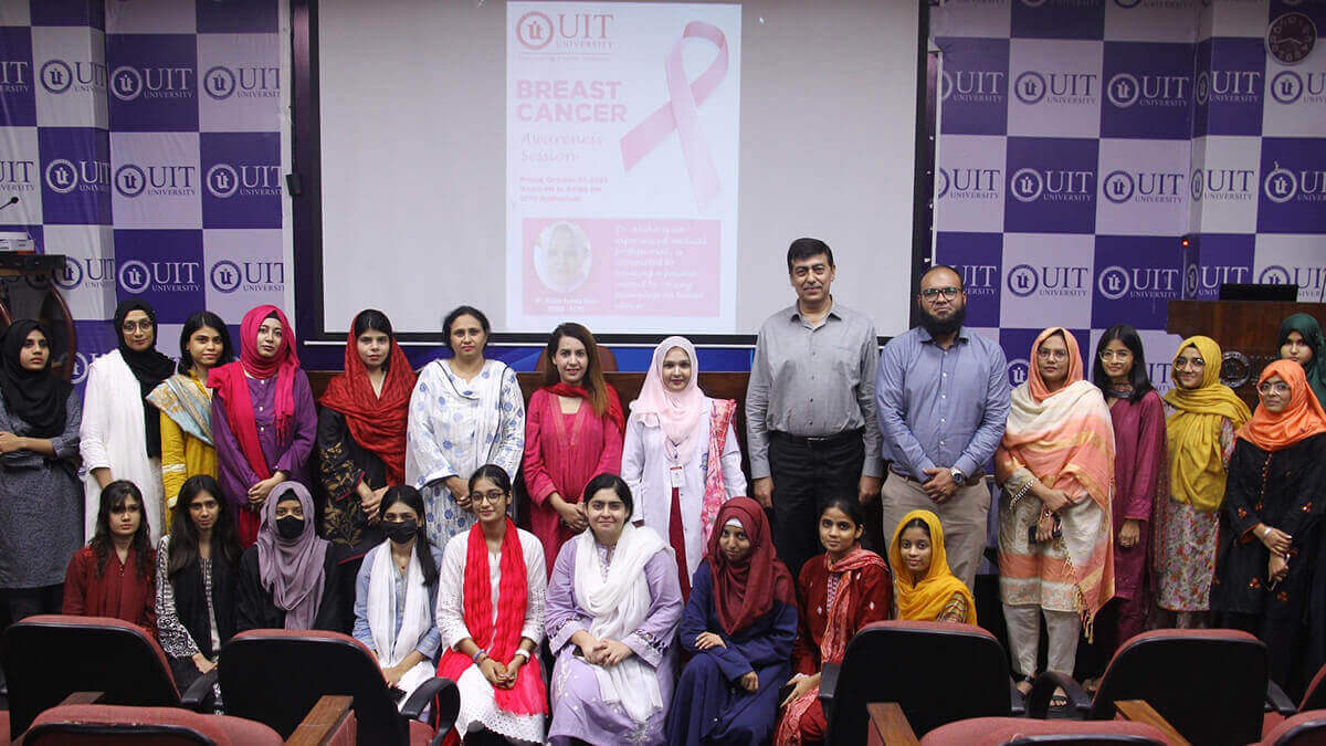 On Breast Cancer Awareness Month, UIT University took a meaningful step by organizing an enlightening session. Dr. Alisha eloquently explained the importance of breast cancer awareness, while our esteemed Vice Chancellor, Dr. Johar Ali, emphasized why awareness on this topic matters.