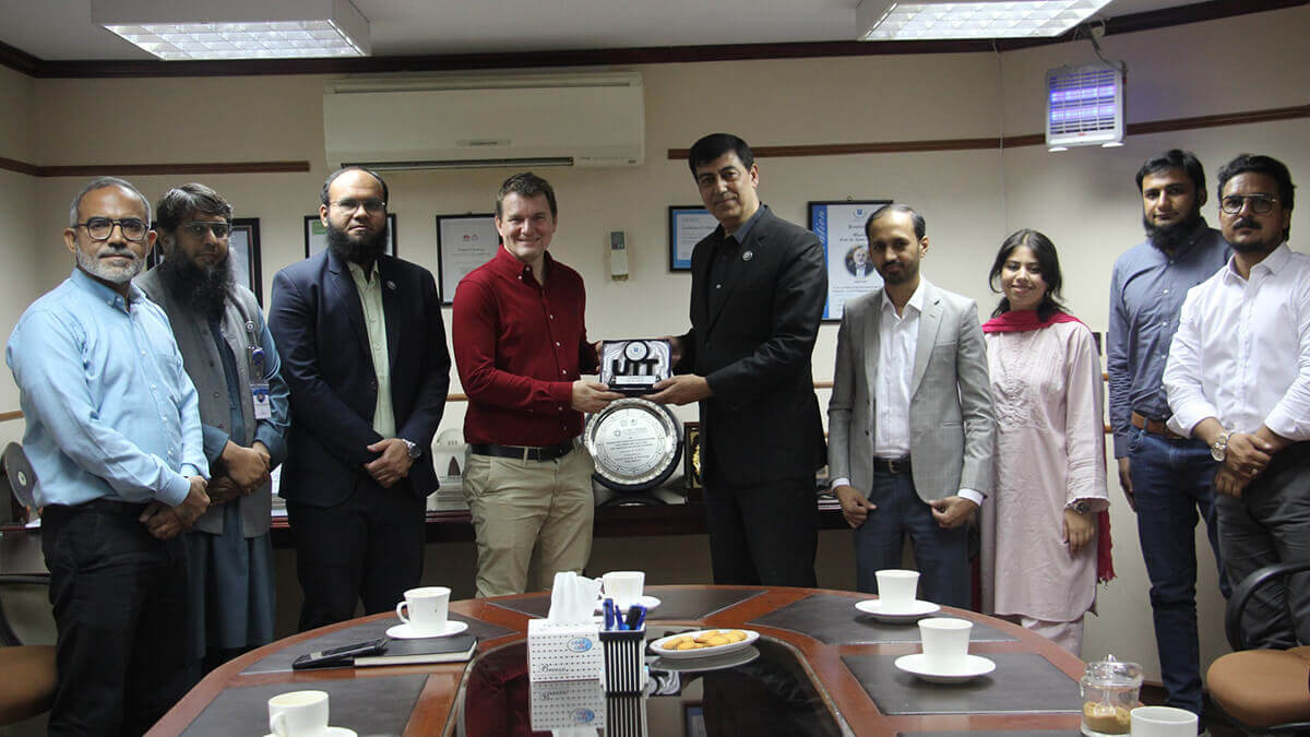 Jan Urbik, Global Chief Security Officer (CSO) of IceWarp, along with Syed Saad Ali (CEO – HCS), Sohaib Khan (CTO – HCS), Omer Mallick (CPO – HCS), and Raza Hassan (Business Growth Executive – HCS), visited UIT University for a collaborative session. The aim was to facilitate knowledge exchange and partnership opportunities on secure communication solutions. UIT University gains insights into cutting-edge trends and technologies for educational institutions.